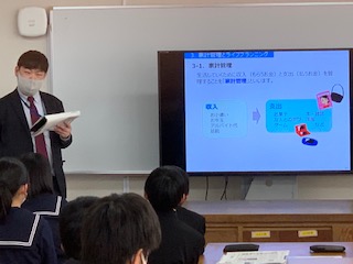 金融庁近畿財務局から加嶋さまを講師として、消費者セミナーを実施しました。社会科と家庭科の教科横断的授業で、お金の仕組みと社会の仕組みを体験を通して学びました。読売新聞大阪本社の伊東さまのご協力により作成していただいた経済新聞を参考に投資家となって株式の売買を模擬体験しました。みんな興味をもって楽しく活動していました。