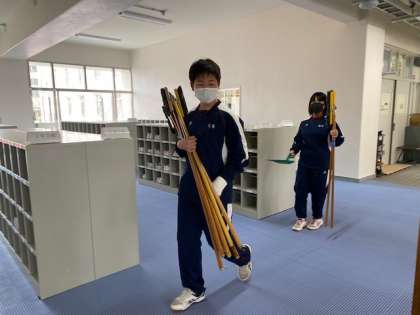 2年生フロアは、2年生の委員会の生徒たちで清掃を行いました。