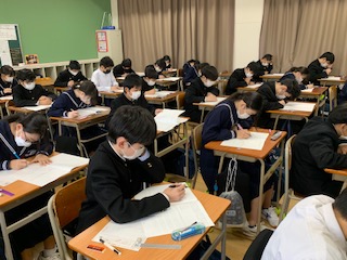 1年生はチャレンジテストとチャレンジテストplusが実施されました。チャレンジテストは国語・数学・英語でチャレンジテストplusは社会と理科です。みんな持っている力を発揮しようと頑張っています。そのひたむきさが必ず自分に返ってきます。目の前の1問に全力投球。