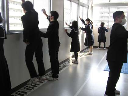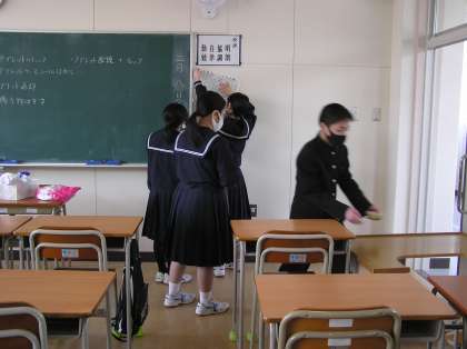 今日は公立高校の一般選抜学力検査でしたので、登校した生徒で校舎の清掃を行いました。まだ新しい校舎ですが、新学年に引き継ぐために感謝の気持ちを込めて、丁寧に掃除をしていました。