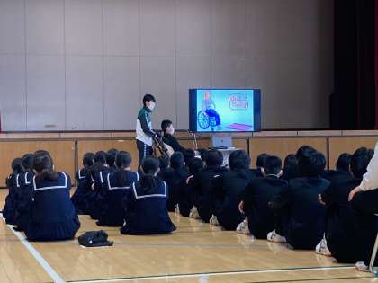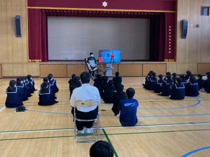 一年生の学年集会の様子です。古川先生より「自分にはできないと思うことがあっても、工夫をしてできることがある」というようなお話がありました。