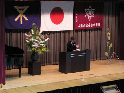 さて、保護者の皆さま、改めまして本日のお子さまのご入学おめでとうございます。本日から、長吉中学校の生徒としてお子さまをお預かりいたします。思春期を迎える子どもたちにとって、中学校生活は将来しっかりとした社会人となるための準備期間でもあります。教育というのは子どもたちの心に一杯、良い種をまいてあげることだと考えます。5年先になるか10年先になるかわかりませんが、立派な花が咲くことを祈る作業とも言えます。