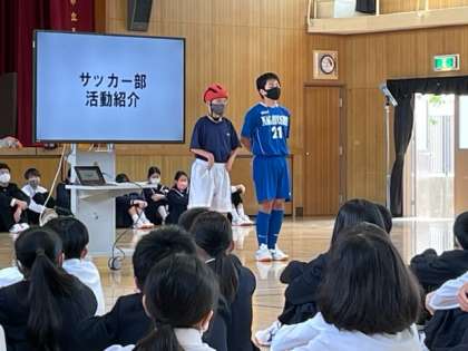 4/13(水)6限に部活動紹介を行いました。2、3年生が1年生に普段の練習の様子や運動部のパフォーマンスを見せたり、文化部の作品を紹介したりしました。