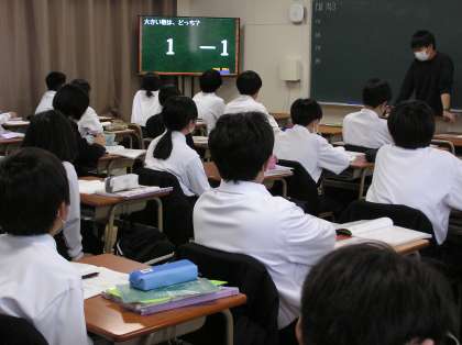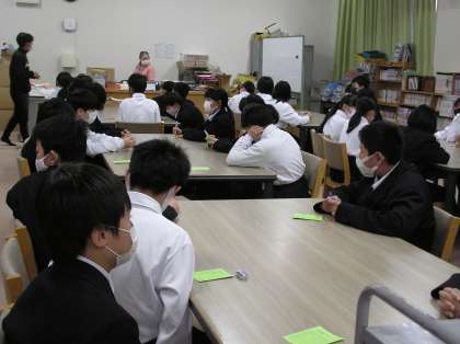 1年生の授業です。数学と国語の様子です。国語は図書室を利用しています。