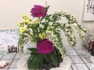 先週、生けていただいた初夏の花、シャクヤクの花が、玄関・校長室で見事な花を咲かせました。今日は初夏並みの気温になるということですが、シャクヤクもそれを感じとったのでしょうか?