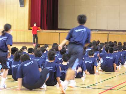1,2組とも体育の授業です。集団行動に取り組んでいます。