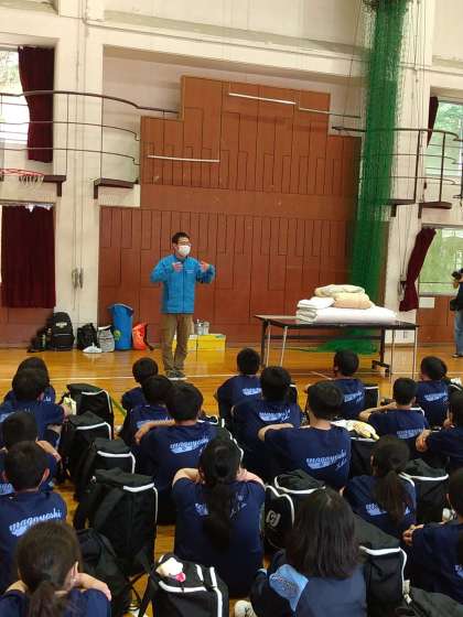 自然の家の職員の方から宿舎の使い方の説明を受けています。