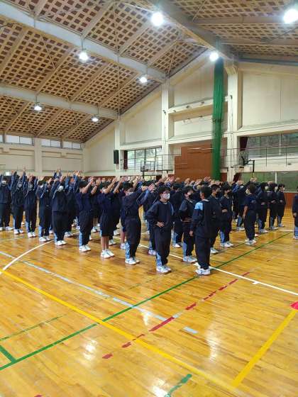 全員で声出しをし、生徒代表から挨拶がありました。