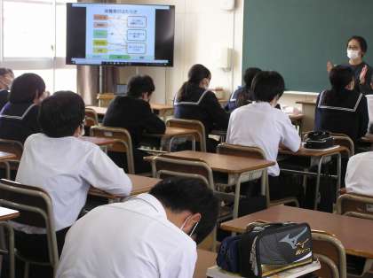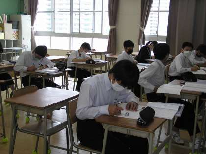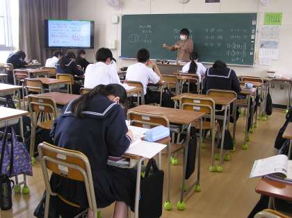 家庭科と数学の授業です。数学は少人数展開です。