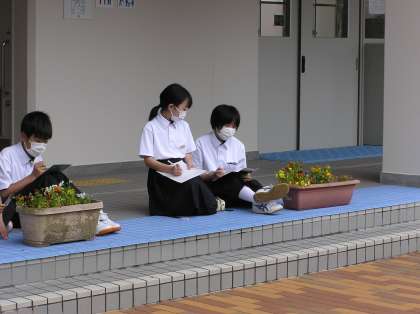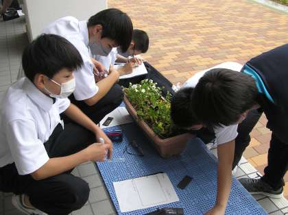 理科と数学の授業です。理科は花の観察とスケッチをしています。