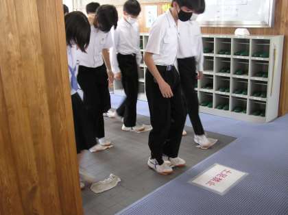 最後は靴に付いた土を落とし、石も校舎に上げないように丁寧に掃除してから教室に入りました。