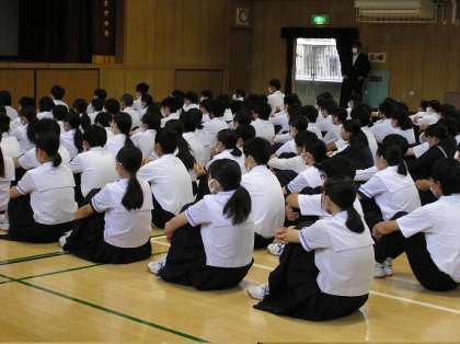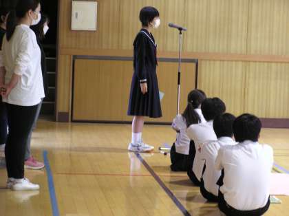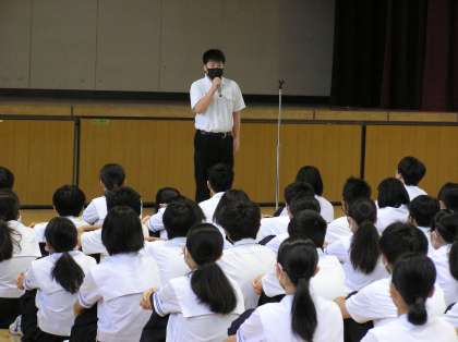 全校集会を実施しました。校長先生から今週に予定されている教育相談について「自分が普段考えていることを積極的に話してほしい。」と話がありました。