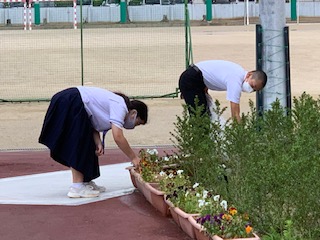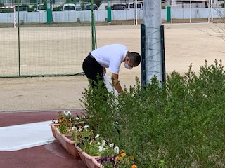 毎朝、当番制で朝、花への水やり、雑草抜きなどをしてくれています。ご苦労さまです。