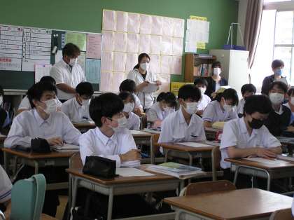 2年生2組の生徒に6時間目まで残ってもらい、中野先生の研究授業を行いました。長吉中学校の先生たちで参観し、授業方法について研究しました。