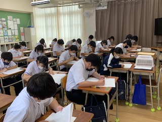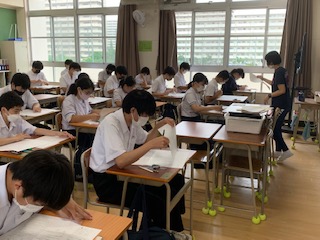 3年生は初めての実力テストがありました。進路決定にかかわってくるテストです。一生懸命に取り組んでいました。持てる力を十分に発揮してもらいたいです。