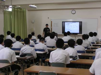 保健体育の授業です。男子は保健、女子は体育の授業です。