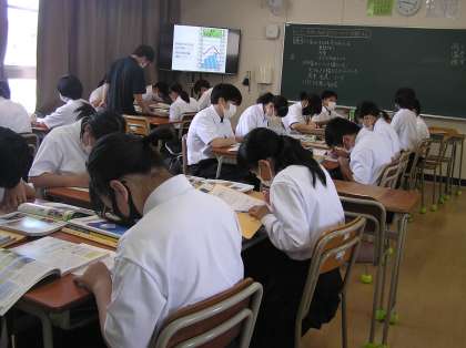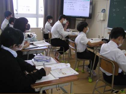 数学と社会の授業です。数学は少人数展開をしています。