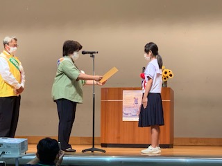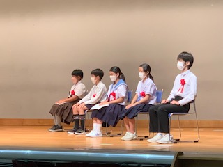 作文コンテストで優秀賞を受賞した、3年吉川悠斗くんと2年木原蒼良さんの表彰式が行われ、武市平野区長より賞状と記念品が授与されました。おめでとうございます。