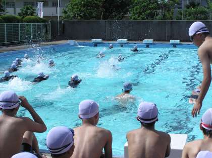 体育の授業です。水泳をしています。