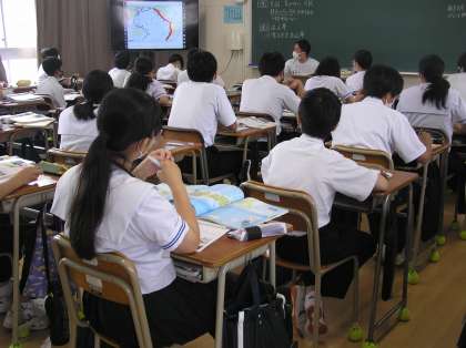 社会と数学の授業です。数学は少人数展開です。