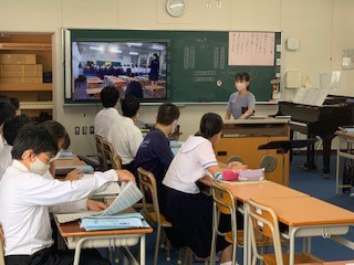 授業は、合唱コンクールに向けて、先輩達の練習風景をビデオで観た後、課題曲「大切なもの」をパート別に分かれて練習、最後に合わせて合唱しました。10月のコンクール本番までまだ時間はありますが、週1時間の音楽の時間を有効につかって、素晴らしいハーモニーを奏でてくれることを期待しています。