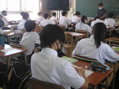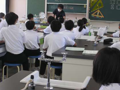 英語と理科の授業です。理科はガスバーナーの実験です。