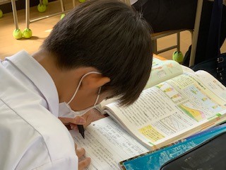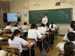 1組は社会です。日本の人口分布や人口構成の変化について学びました。