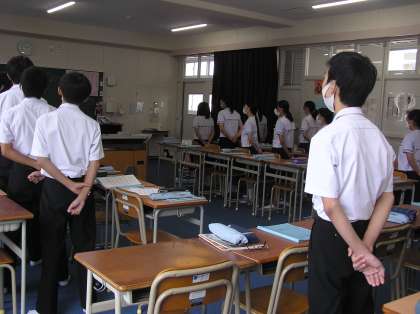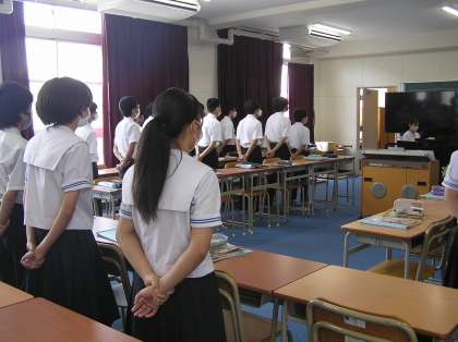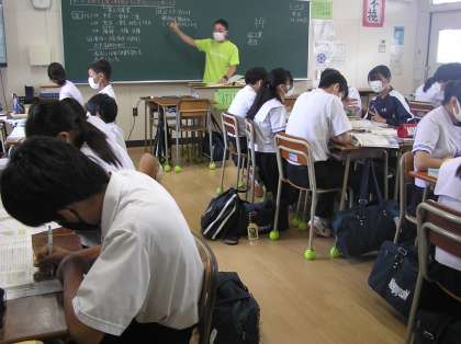 音楽と社会の授業です。音楽は合唱の練習をしています。