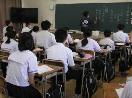 国語と理科の授業です。理科の授業は実験結果の発表を班ごとにしています。