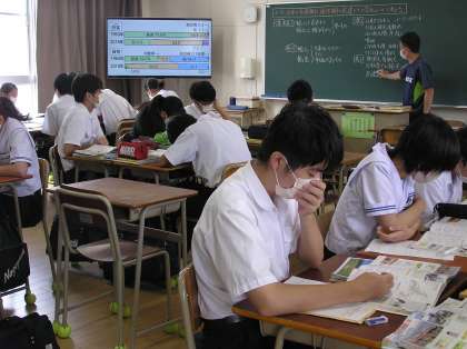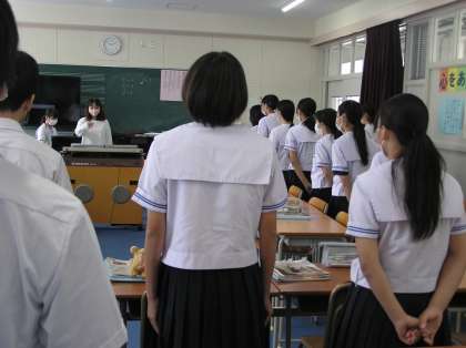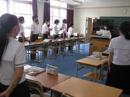 音楽と社会の授業です。音楽は合唱の練習をしています。