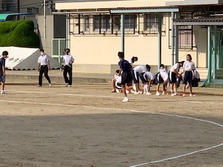 30 日の本番に向けて、今日も朝早くから、縦割りの団での自主練習が行われていました。リレーのバトンの受け渡しや綱引き、ムカデ競争などで、学年をこえて心合わせ協力して取り組んでいました。