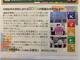 本校の生徒会の「心づくり運動」の活動が、平野区の広報10月号に掲載されました。毎日と定期的な生徒会の地道な活動が評価され生徒たちの励みになりました。