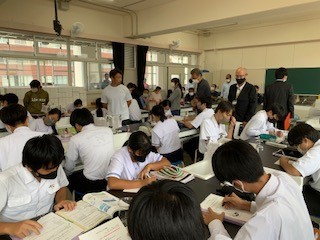研究授業終了後、全教員で授業の振り返り、検討会を行いました。また、大阪市教育センター教育指導員柏木先生からご高評いただきました。ありがとうございました。