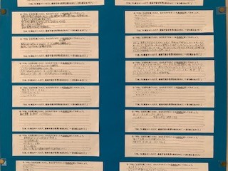 【「平和な世界を築く」ために具体的に自分ができること】で生徒各自が考えたことも貼り出しています。
