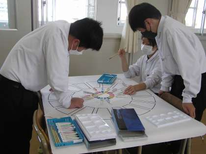 1年生の展示発表「壁新聞」の取り組みです。壁新聞のテーマは「今、私たちにできるSDGs」です。SDGsは持続可能な開発のために17の国際目標を定めています。その目標を班ごとに1つ決め、壁新聞を作製します。