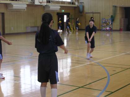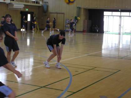 2年女子体育の様子です。バレーボールのレシーブの練習を行いました。班で輪になり練習したり、順番に練習したりしながら、教え合いながら取り組んでいました。