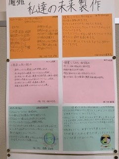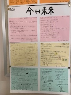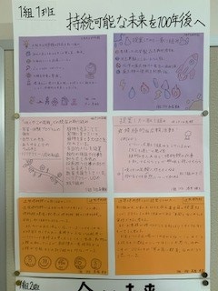 南館東階段の踊り場に、明日実施される2年校外学習(大阪メトロフィールドワーク)の事前学習として、各班見学する大阪市の各施設で、SDGsに関して、既存の取り組みを調べまとめ、また、各自が考えたSDGsの新たな取り組みの提案をまとめたものを掲示しています。ユニークな、また再発見できる提案も数多くあり大いに興味をそそられました。明日の校外学習で調べたことをさらに掘り下げ有意義な一日にしてくれることと思います。紙の色分けは、施設別の工夫がされています。