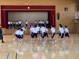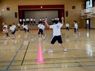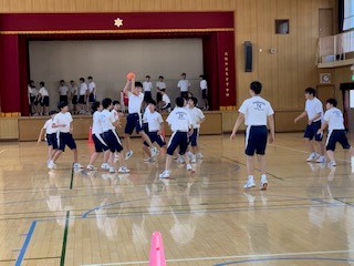 ハンドボールです。最後に3分のミニゲームも行いました。好プレーあり、珍プレーありと全員がゲームに参加していました。