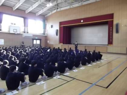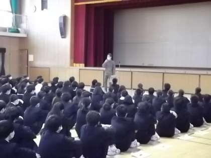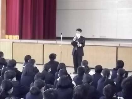 定例の全校集会を実施しました。教頭先生より講話をしていただきました。