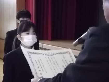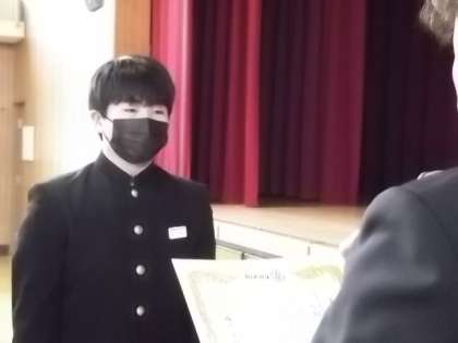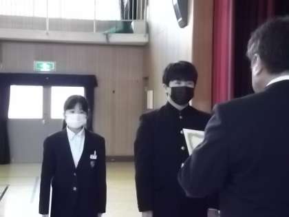 始業式に続き、少年非行防止標語コンクールの伝達表彰を行いました。長吉中学校の仲間に表彰される人がいることは嬉しいことですね。