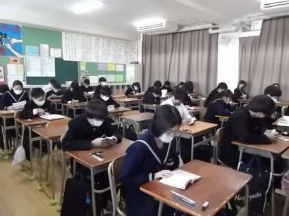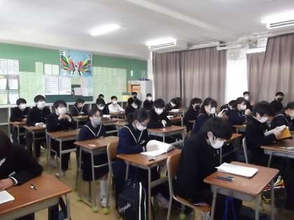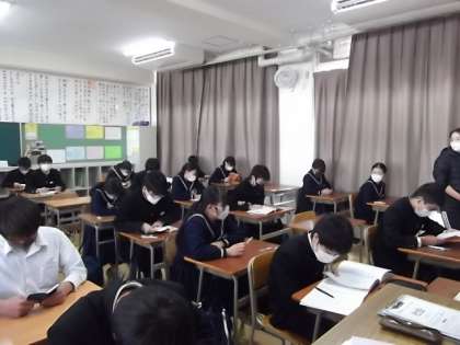 3年生は第5回実力テスト、1,2年生はチャレンジテストおよび1年生はそれに加えてチャレンジテストplusを実施しました。冬休みの取り組みの成果が出るように期待しています。特に3年生は進路獲得に向けてラストスパートです。3学期の良いスタートを切れると良いですね。