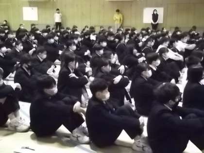 明日1月17日は阪神・淡路大震災が起こって28年目にあたります。神戸を中心に震災で亡くなられた約6,500人の鎮魂・追悼を、発生日時の1月17日5時46分に合わせて黙祷を捧げます。この後にも東日本大震災、大阪北部地震、熊本大震災など各地で震災が起こり、多くの人命と甚大な被害が出ています。自然現象はどうにもなりませんが、尊い人命を失った震災を過去のものとはせず防災の心得を持つことは大切なことです。先週11日に気象庁で地震に関する有識者会議が開かれ、マグニチュード8、9クラスの南海トラフ地震が今後30年以内に発生する確率が80%と発表されました。いつ起こるかもしれないという危機感をもって、今自分にできる準備を考えてほしいと思います。1月27日には3年生でHUG 避難所運営ゲームを行います。中学生も地域の防災リーダーの一端を担う者、という心がけを持ってしっかり学んでもらいたいと思います。