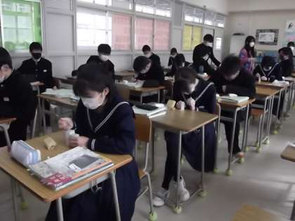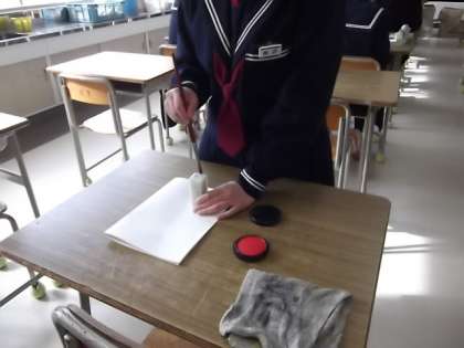 篆刻(てんこく)の授業をしています。デザインを考え、試しに押印している生徒もいました。思い出に残る作品になって欲しいですね。