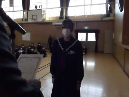 全校集会に先立ち、バドミントン部の表彰伝達を行いました。日々の努力が成果として現れ、表彰してもらえるのは嬉しいですね。これからも努力を続けていきましょう。