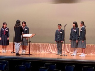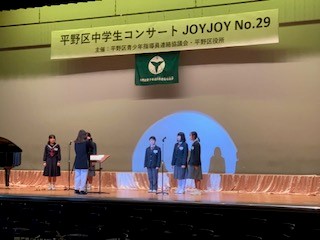 舞台発表では、長吉中学校と瓜破中学校の合唱部が合同で演奏しました。一曲目に「竈門炭治郎の歌」、二曲目に「ヘイルホーリークイーン」と言う曲を歌いました。曲に合わせて、会場では手拍子が巻き起こりました。