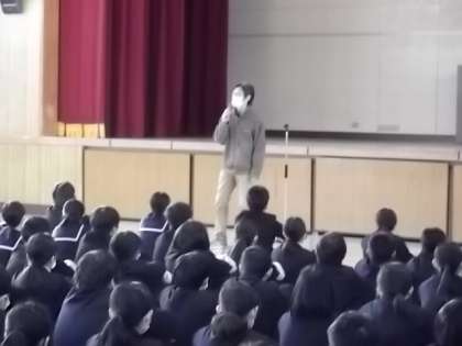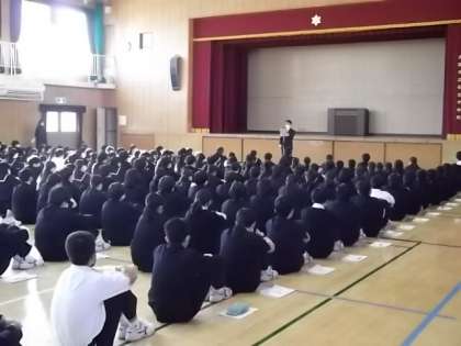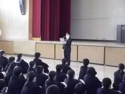 定例の全校集会を実施しました。教頭線より講話があり、3年生にとっては最後の全校集会でした。落ち着いた雰囲気の中で聞く姿勢と気持ちを整えられた良い集会でした。