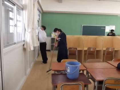 今日は公立高校一般選抜の日でした。一般選抜を受験しない3年生は登校し、大掃除をしました。3年生が新校舎を利用したのは1年3か月ですが、感謝の気持ちを込め、後輩に気持ち良く引き継ぐために頑張っていました。