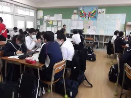 2年生が進路学習を行いました。それぞれが調べた高校の特徴や調べようと思った理由などを発表し、情報を共有しました。