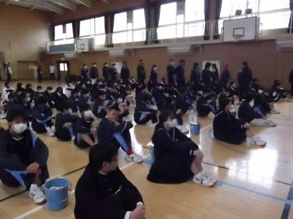 クリーンアップ活動として校内の清掃と来年度への準備を行いました。予定では地域の清掃活動をする予定でしたが、雨天のために学校内の活動となりました。卒業したばかりの3年生も参加してくれました。感謝の気持ちの持てる、また、人の感謝の気持ちを感じ取ることができて欲しいです。