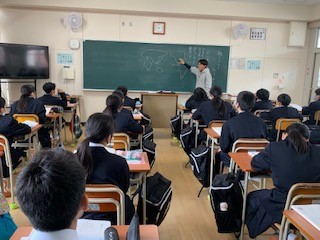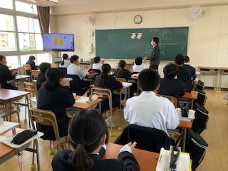2組は数学です。授業のはじめに百ます計算にチャレンジします。負の数の概念、考え方の確認をしました。